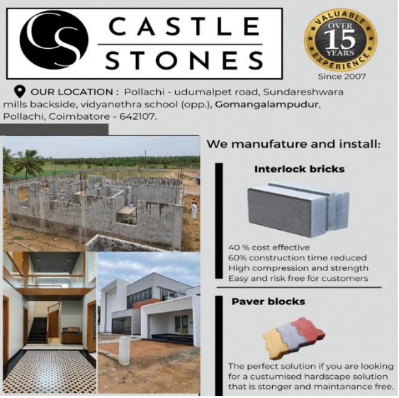 Castle Stones is a leading manufacturer of high-quality masonry products, specializing in interlocking bricks, traditional bricks, hollow and Paver blocks. Incorporated in 2017, the company has quickly earned a reputation for durability, precision, and design innovation. With a strong focus on sustainable materials and construction efficiency, Castle Stones serves both residential and commercial sectors, offering versatile solutions that meet mod ... View More